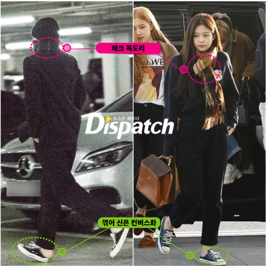 '디스패치'가 카이와 제니의 공원 데이트를 단독으로 포착했다.