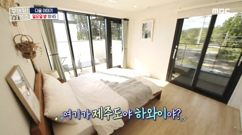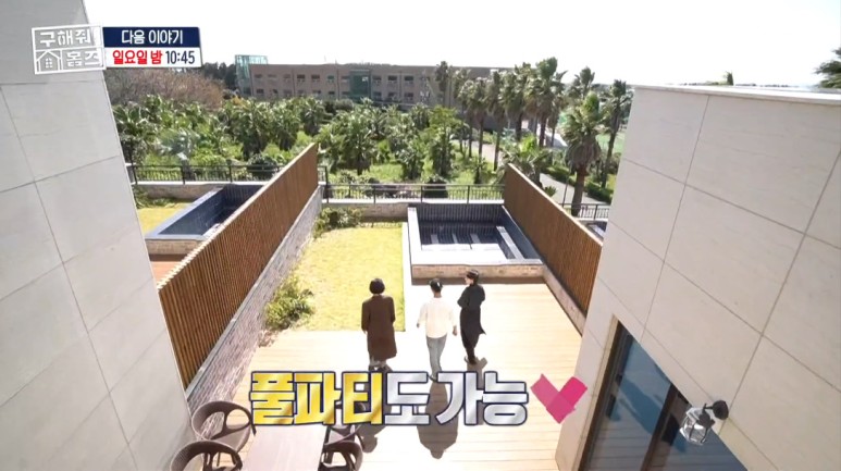 한편 덕팀 노홍철, 임성빈, 한채영은 자연이 아름다운 제주시 봉개동 초원 뷰는 백만불까지와 모던인테리어가 콜라보된 제주시 조천읍 조천리 제주 어서옵셔를 방문했습니다. 제주시 조천읍에 위치한 어서옵셔는 야자수 조경이 있는 앞마당과 뻥 뚫린 뒷마당은 의뢰인의 조건인 반겨련들의 공간으로도 손색이 없었다고 합니다.