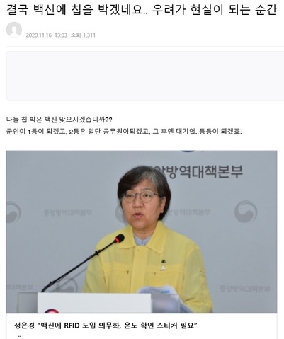 코로나 백신 맞으면 몸에 무선인식칩 삽입된다고?